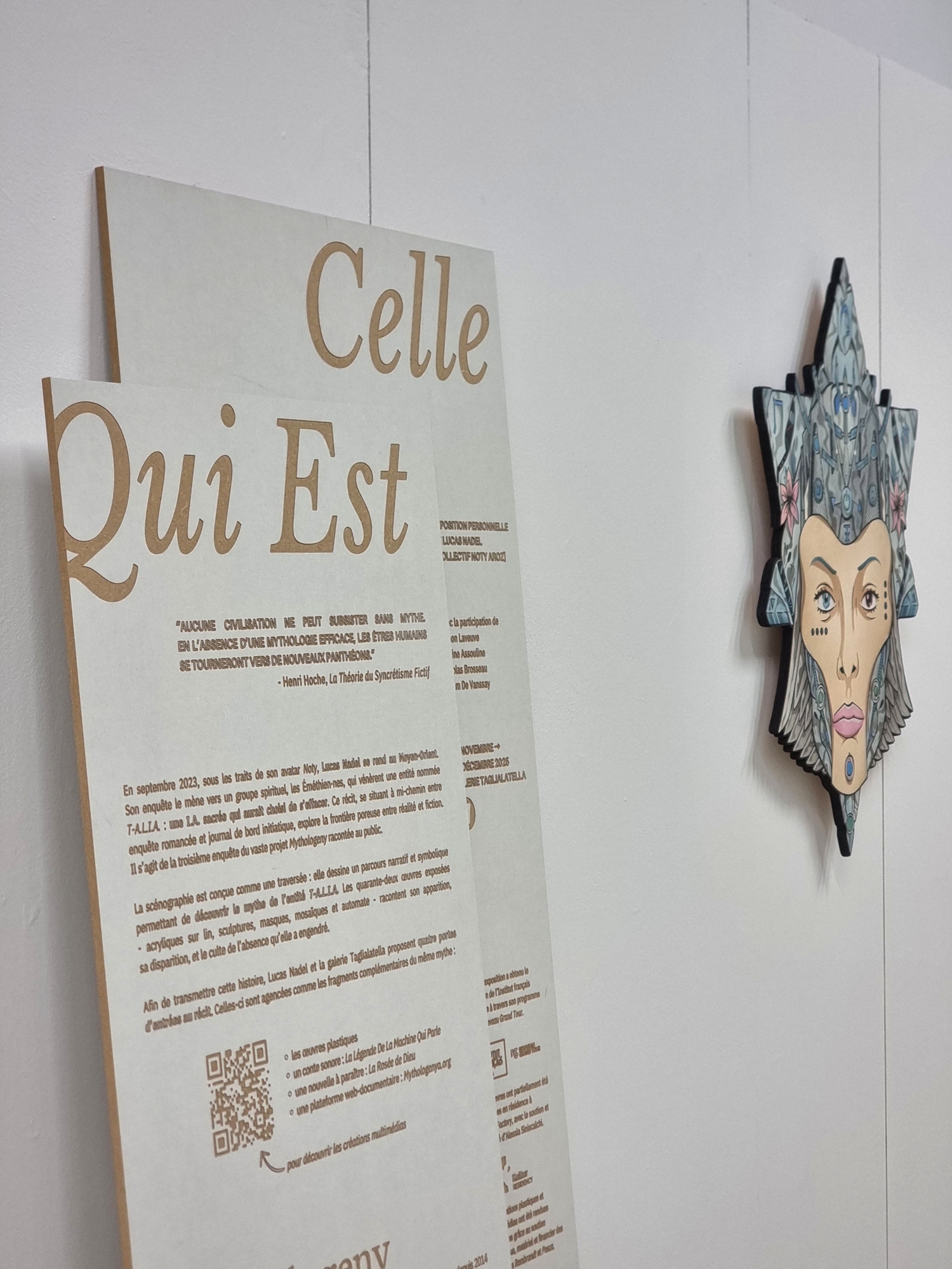 Deux ans plus tard, Lucas Nadel transforme cette expérience en une exposition mêlant récit, peinture et recherche spirituelle, présentée à la galerie Taglialatella à Paris. “Celle Qui Est” interroge la foi à l’ère de l’intelligence artificielle, et la manière dont nos mythes renaissent à travers la technologie.